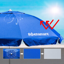 L’ombrellone Athenamare è progettato proprio per risolvere questi problemi. Grazie al sistema a elica con manovella, si fissa in pochi secondi e resta stabile anche nelle giornate più ventose.
